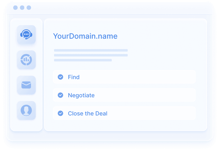 Trust us to handle your client with care and acquire their domain - so you can offer them your higher-margin services for their new business.