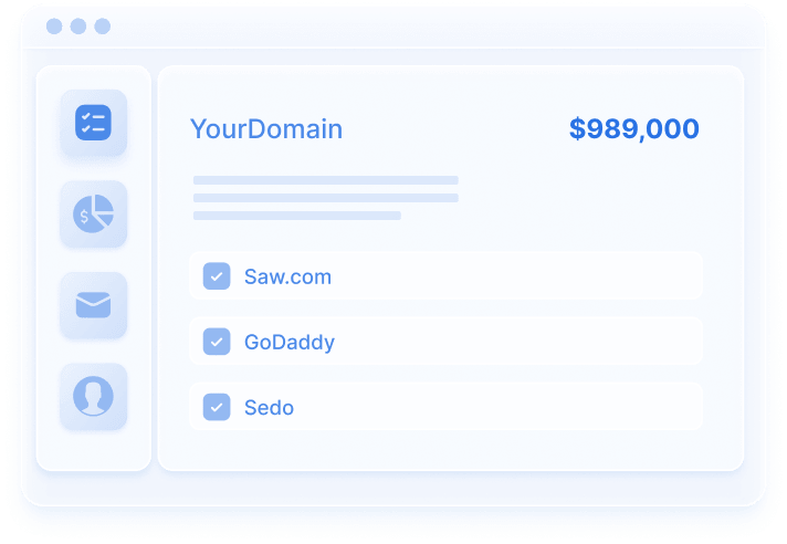 We manage every aspect of your domain portfolio on multiple marketplaces, keep inventory updated, and stay in contact with you to align on long-term strategy.